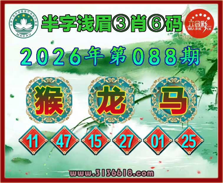 088期:【半字浅眉】 ♥️③肖⑥码♥️【猴马】开:龙27准上榜高手