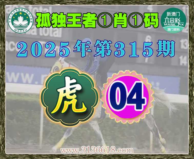 315期:【孤独王者】 🍃①肖①码🍃【】【04】开:虎04准上榜高手